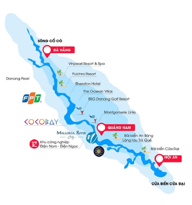 Mallorca River City tọa lạc trên mặt tiền sông Cổ Cò, tuyến đường thủy nội địa nối liền Hội An, Quảng Nam - Đà Nẵng với tổng chiều dài 28km. Tuyến đường thủy này hi vọng sẽ là cú hích đối với phát triển kinh tế - xã hội mà đặc biệt là phát triển du lịch đường thủy Đà Nẵng - Hội An.