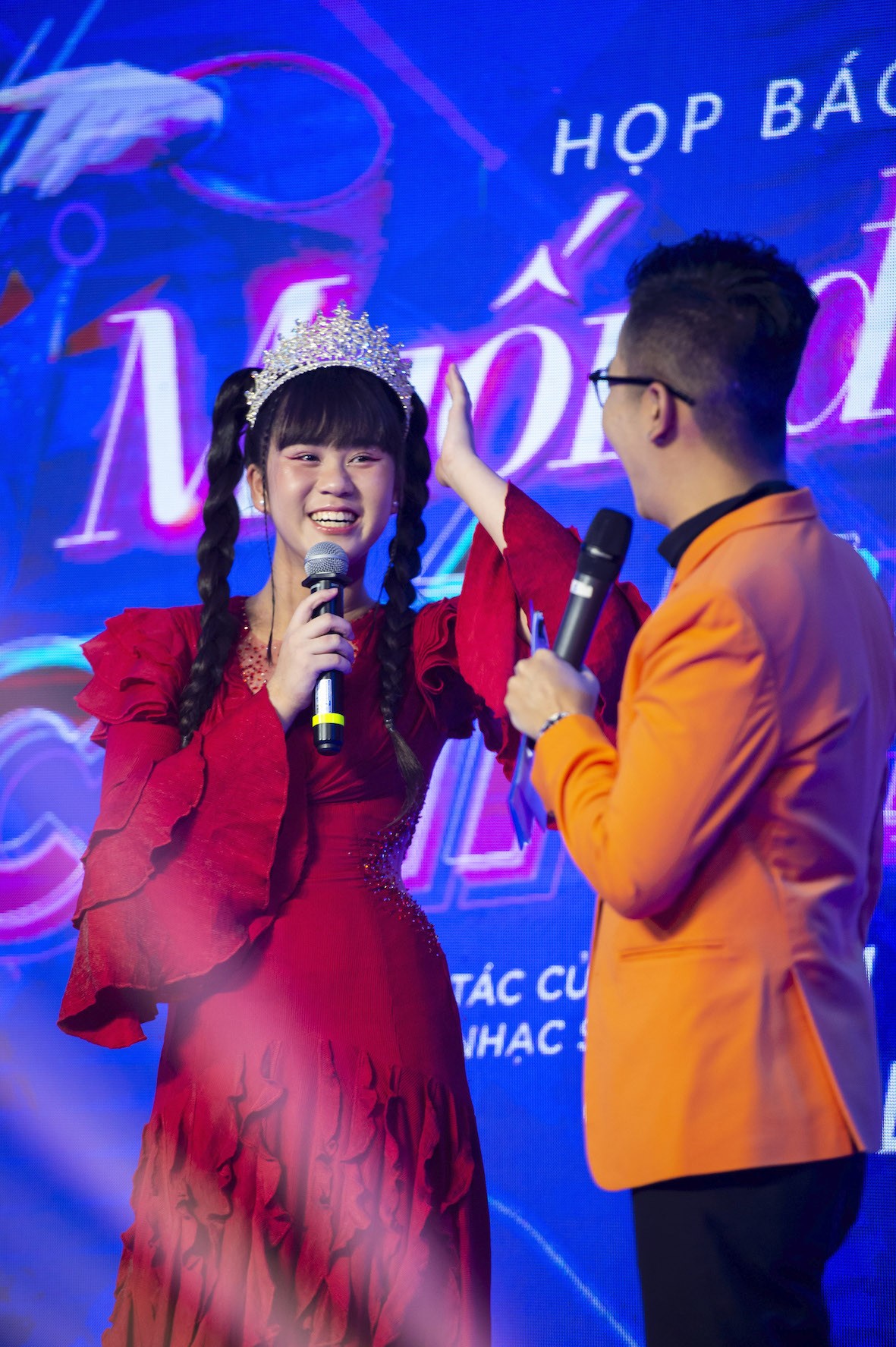 Nếu Top 3 Vietnam Idol Kids 2016 Gia Khiêm lịch lãm xuất hiện tại sự kiện với "cây" trắng lịch lãm thu hút nhiều ánh nhìn thì bé Bào Ngư khiến mọi người chăm chú bởi nét trong trẻo hồn nhiên, Hoa hậu Ngô Ngọc Gia Hân rạng rỡ trong chiếc đầm đỏ rạng rỡ chúc mừng thành công của bạn.
