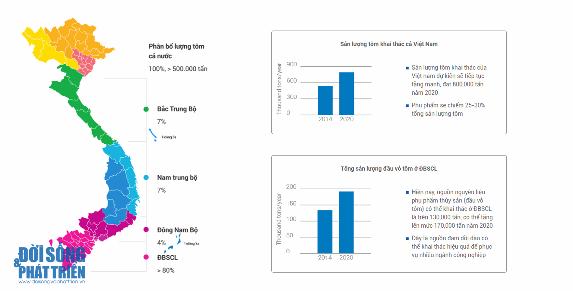 Theo dự tính, đến năm 2025 nếu ngành tôm Việt Nam đạt tổng kim ngạch xuất khẩu như trên thì đồng nghĩa lượng phụ phẩm tôm thải loại ra môi trường là khoảng 450.000 tấn, tương ứng mỗi ngày có hơn 1.000 tấn phụ phẩm bị thải loại khỏi dây chuyền sản xuất.. Đây là một con số khổng lồ.