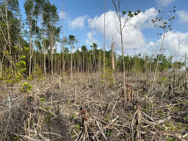 Một khu rừng thuộc tiểu khu 136, BQL rừng phòng hộ Tam Giang 1, bị chặt trắng