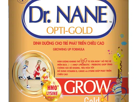 Dr. Nane Opti–Gold Grow với hàm lượng kháng thể IgG từ sữa non, sự kết hợp công thức 2’FL HMO + probiotic - prebiotic giúp tăng cường miễn dịch, tăng cường sức đề kháng, tiêu hóa tốt, Vitamin D, canxi, lysine giúp phát triển chiều cao.