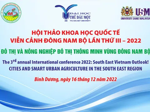 Ngày 16/12/2022, tại Bình Dương, Trường Đại học Thủ Dầu Một phối hợp cùng Viện Khoa học Nông nghiệp Việt Nam và Đại học Sains Malaysia tổ chức Hội thảo khoa học Quốc tế: Viễn cảnh Đông Nam Bộ lần III năm 2022 với chủ đề "Đô thị và Nông nghiệp đô thị thông minh vùng Đông Nam Bộ".