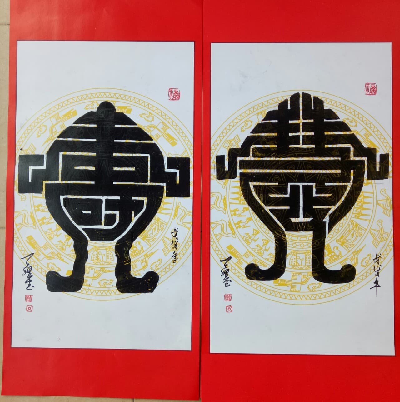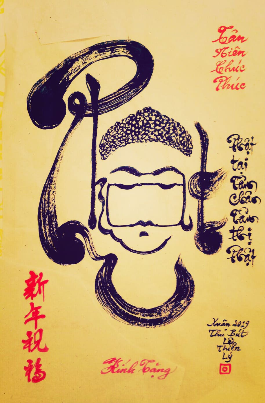 Dưới đây là một số bức thư pháp mang phong cách “Nhân diện thư” và “Vật điểu thư” của Nhà thư pháp Lê Thiên Lý: