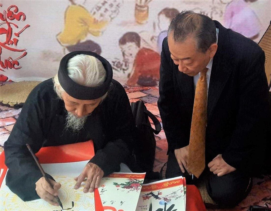 Nhà thư pháp Lê Thiên Lý trong một dịp khai bút đầu xuân