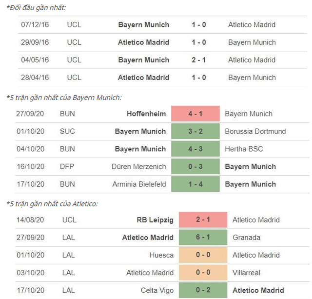 Mặc dù vậy, hàng thủ của Bayern Munich vẫn lộ ra những điểm yếu chết người, khi họ cũng đã để thủng lưới tới 11 bàn. Hai trận đấu gần nhất, hàng phòng ngự đã để thủng lưới tới 5 bàn, nên HLV Hansi Flick chắc chắn phải có những điều chỉnh phù hợp khi đối đầu với đội bóng có hàng tấn công sắc bén như Atletico Madrid.