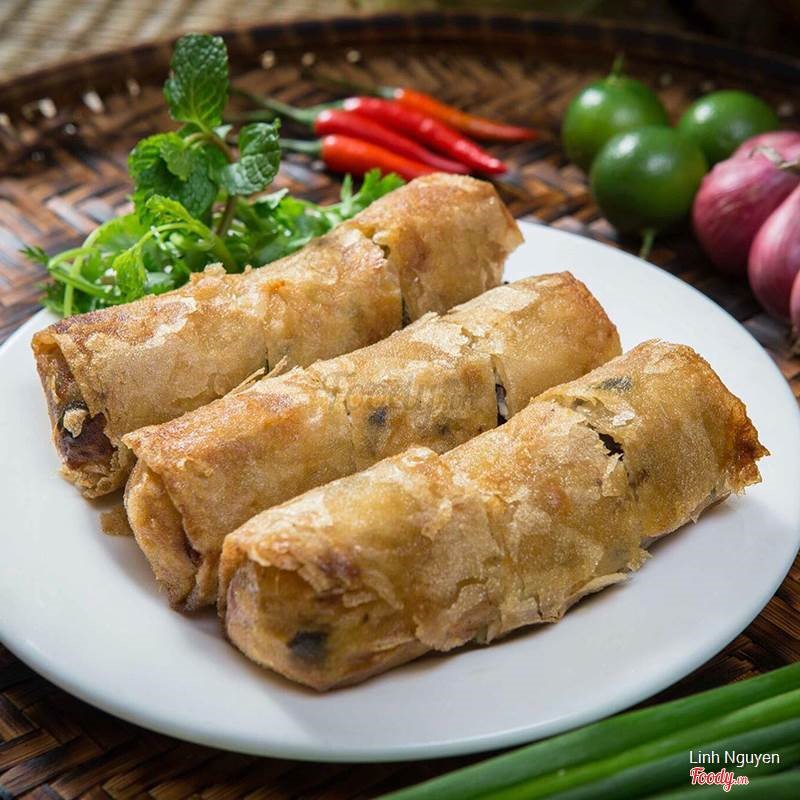 Cái hay, cái lạ của Bún Chả Sinh Từ là bún chả có thể ăn kèm với Nem Hải Sản. Nem rán hải sản có vỏ màu vàng nâu. Chỉ cần cắn một miếng qua lớp vỏ giòn rụm của chiếc nem hải sản là mùi vị hải sản đậm đà quyện với vị thơm của nấm hương sẽ đánh thức vị giác một cách mạnh mẽ cho đến khi các gia vị len lõi tan đều trong miệng bạn. Bạn không khỏi xuýt xoa sau khi thưởng thức món ăn kèm tuyệt ngon này khiến ai cũng mê mẩn, ăn một miếng rồi lại muốn ăn thêm..