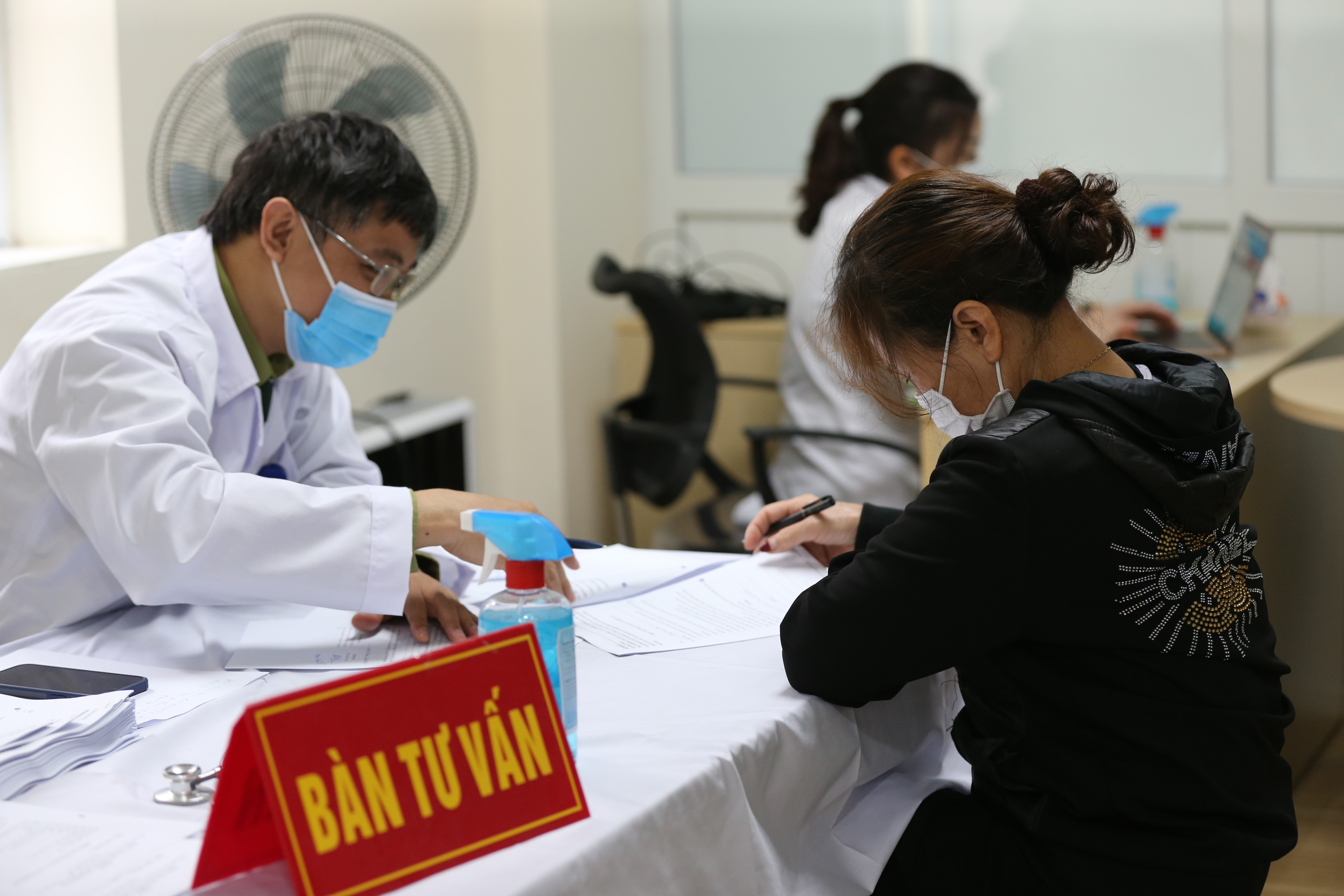 Hôm nay, sẽ có 33 người đủ tiêu chuẩn để tiêm và tiêm cả 3 liều (25mcg, 50mcg, 75mcg), đồng thời sẽ có các trường hợp được tiêm giả dược. Lần thử nghiệm này có sự tham gia của người có bệnh lý nền, đái tháo đường, tăng huyết áp, bệnh gan…- Ảnh: VGP |