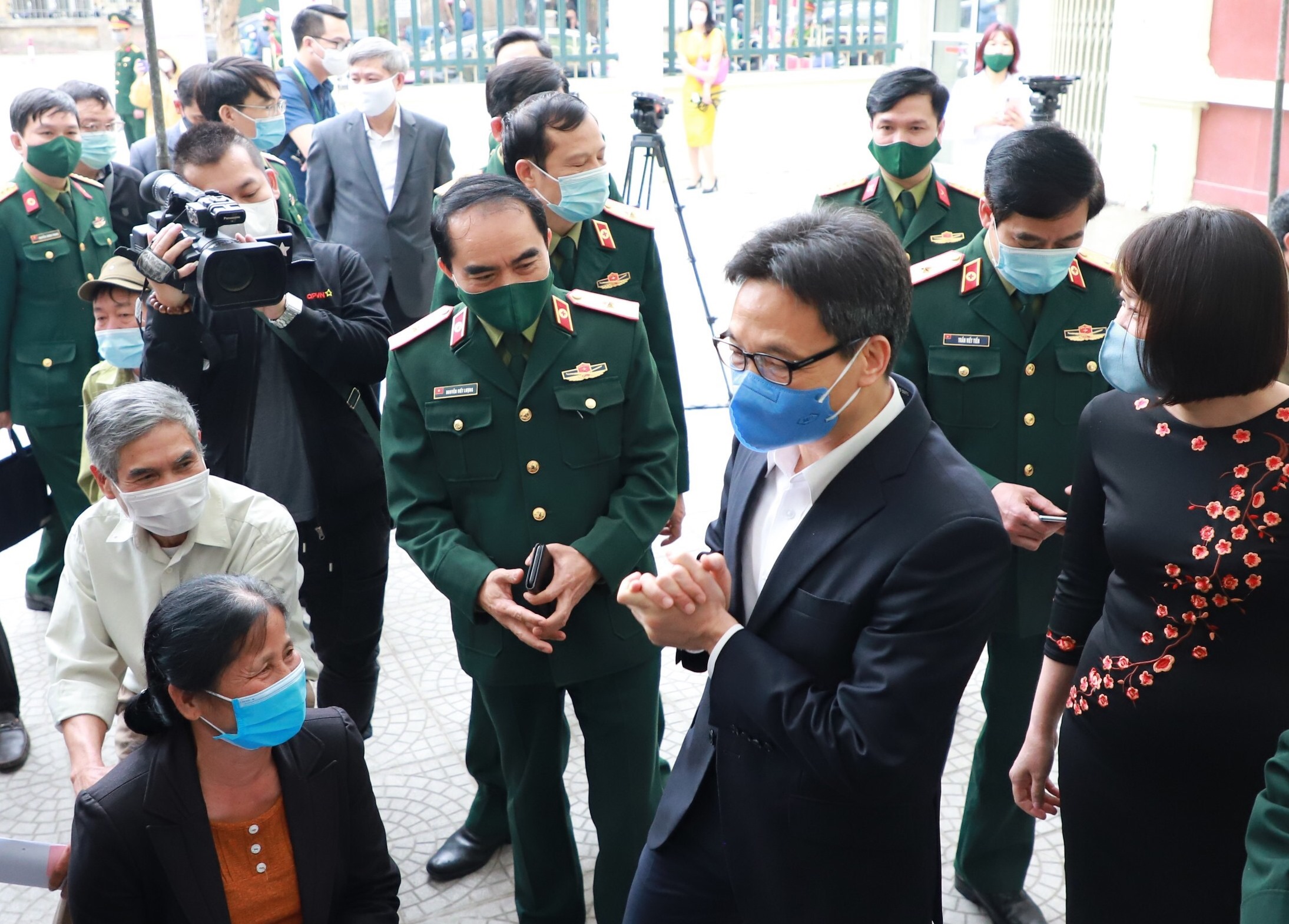 Ngay đầu giờ sáng, Phó Thủ tướng Vũ Đức Đam, Trưởng Ban Chỉ đạo Quốc gia phòng, chống dịch COVID-19 đã đến động viên các tình nguyện viên và lực lượng tham gia nghiên cứu vaccine. - Ảnh: VGP |