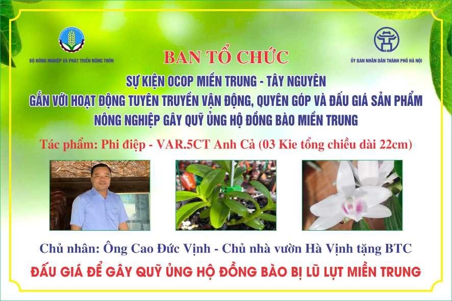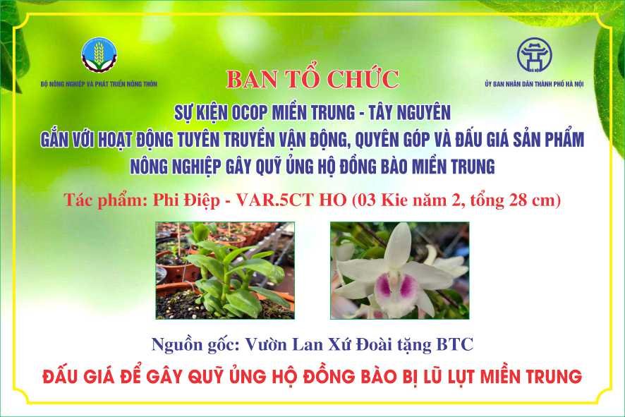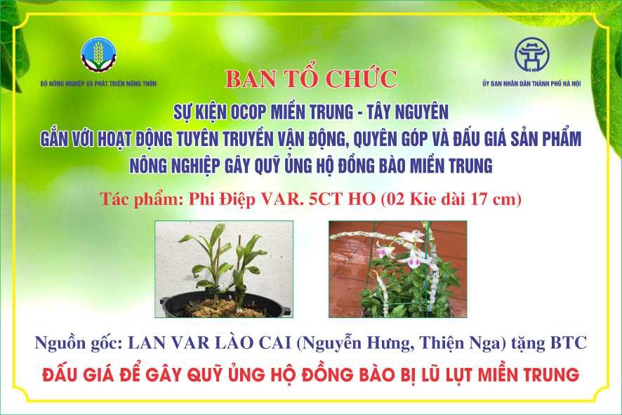 2. Tác phẩm Phi điệp 5CT HO của anh Nguyễn Hưng, Thiện Nga (Lan VAR Lào Cai) và người thắng cuộc là anh Hoàng Anh Tuấn - Vườn Lan Tuấn Thịnh (Điện Biên) với số tiền là: 36.000.000 đồng.