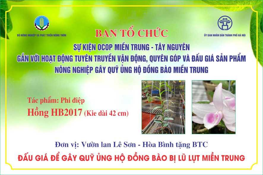 3. Bộ tác phẩm: Hồng HB2017 của Nhà vườn Lê Sơn (Hòa Bình); Phi điệp 5CT HO của Vườn lan Xứ Đoài; Phi Điệp 5CT Anh Cả của Vườn Lan Hà Vịnh (Hoài Đức - Hà Nội), người thắng cuộc là bà Trịnh Thị Hạnh (Số 7 ngõ 173/134 Hoàng Hoa Thám, Ba Đình, Hà Nội) với số tiền là: 88.000.000 đồng.