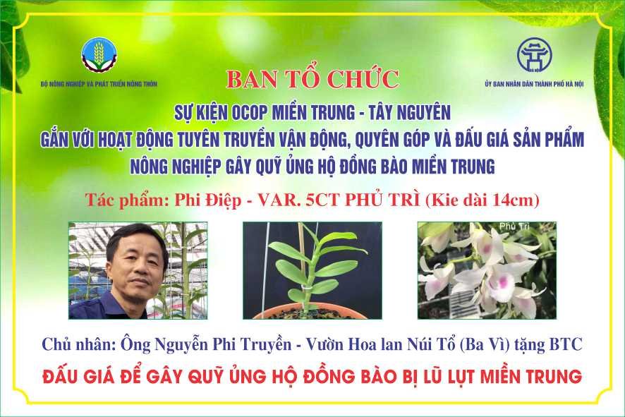 1. Tác phẩm Phi điệp 5CT Phủ Trì của anh Nguyễn Phi Truyền - Vườn Lan Núi Tổ và Người thắng cuộc là anh Lê Đức Bắc - Suối Hai, Cẩm Tâm, Cẩm Lĩnh, Ba Vì, Hà Nội với số tiền là: 25.500.000 đồng.