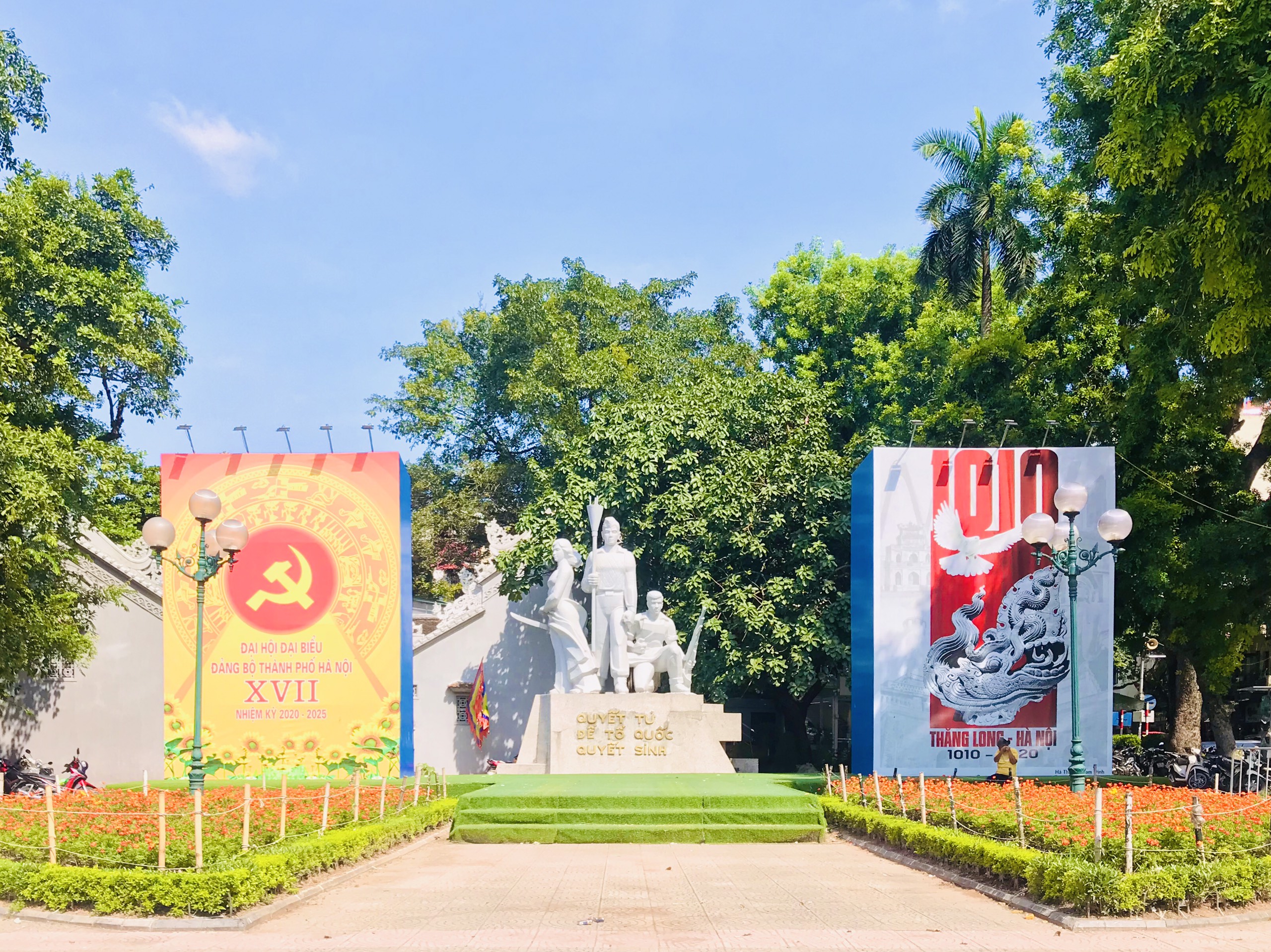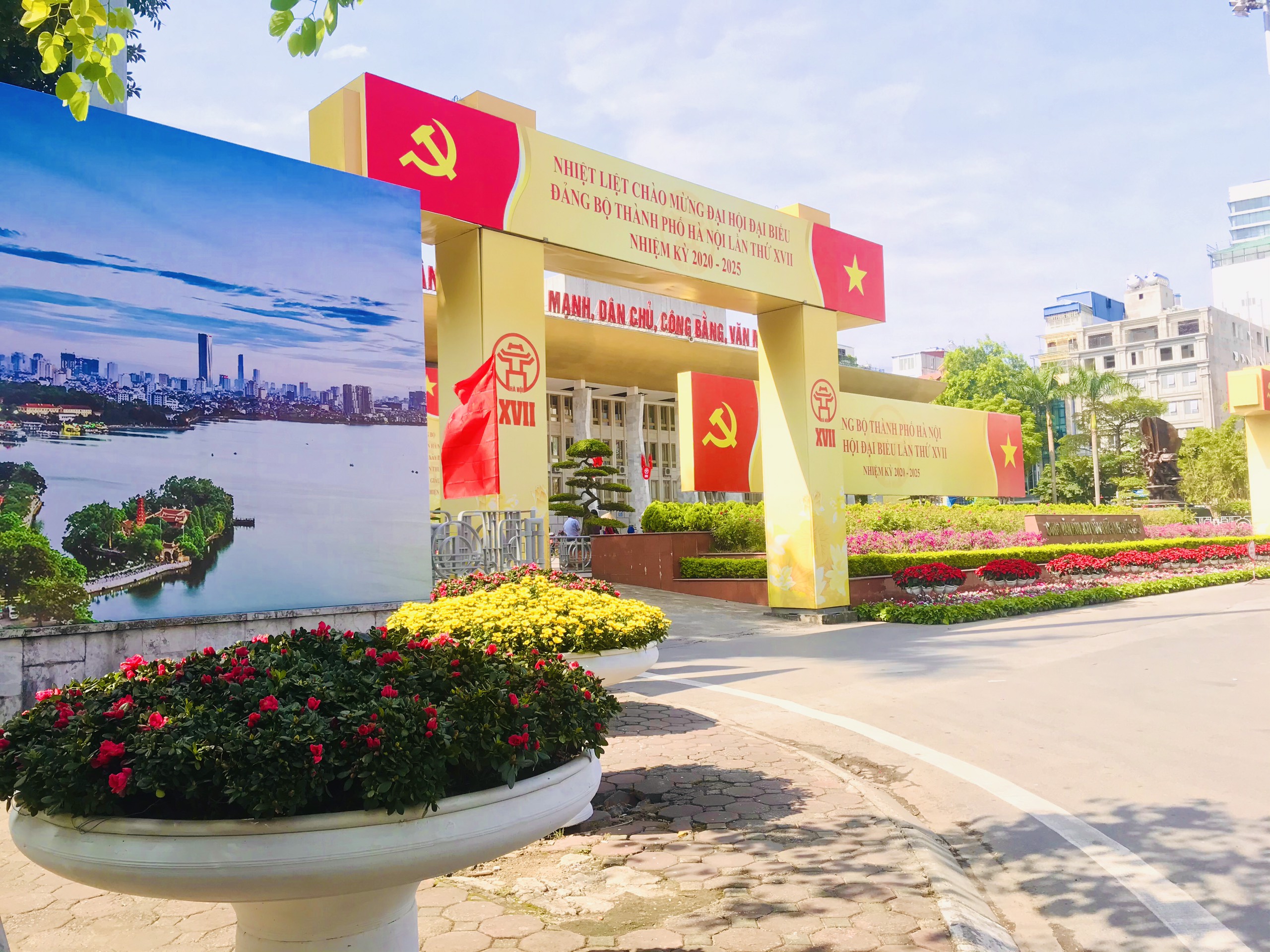 Điểm nhấn tập trung trang trí, tuyên truyền tại nơi tổ chức Đại hội, khu vực xung quanh trụ sở Thành ủy, HĐND, UBND Thành phố, quảng trường Ba Đình, khu vực xung quanh hồ Hoàn Kiếm, các tuyến đường trung tâm Thành phố.