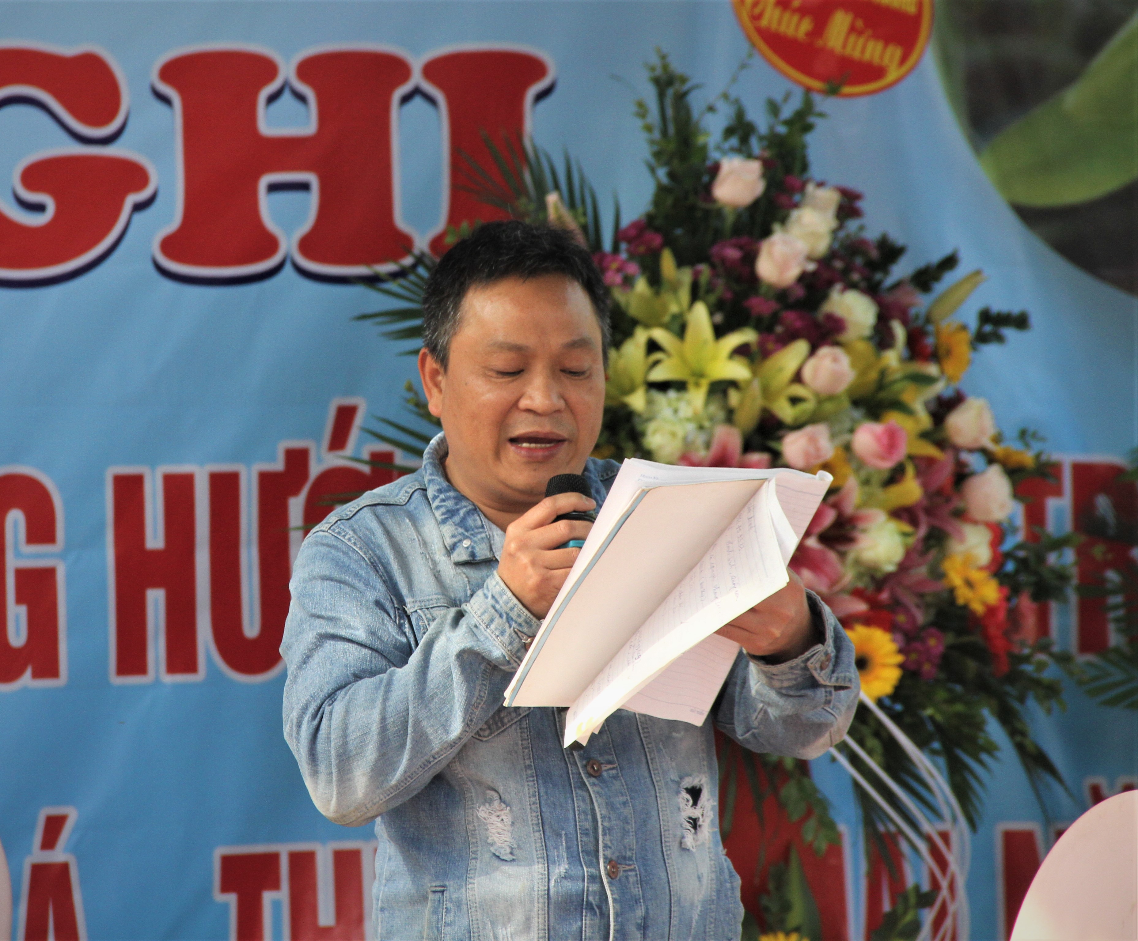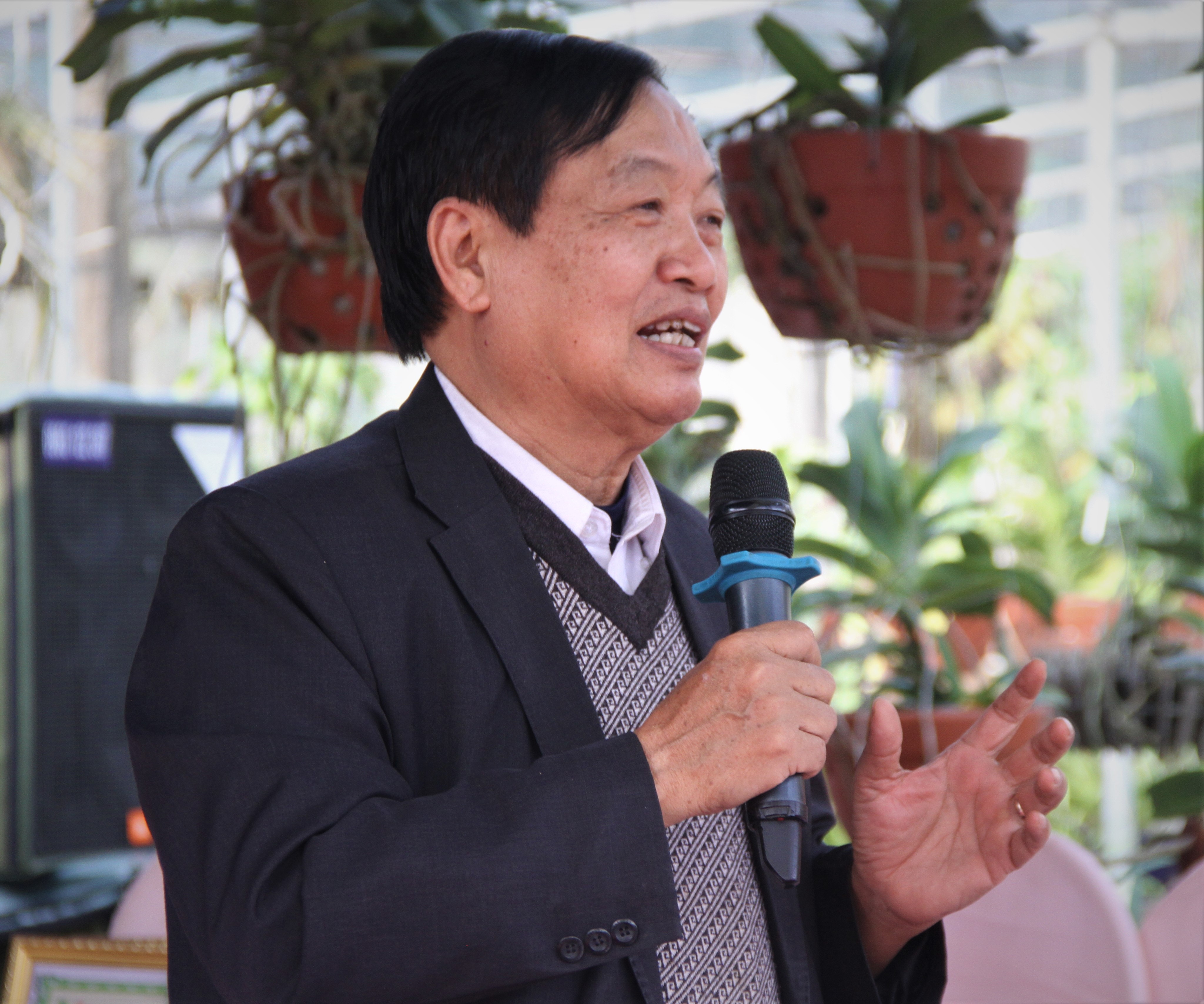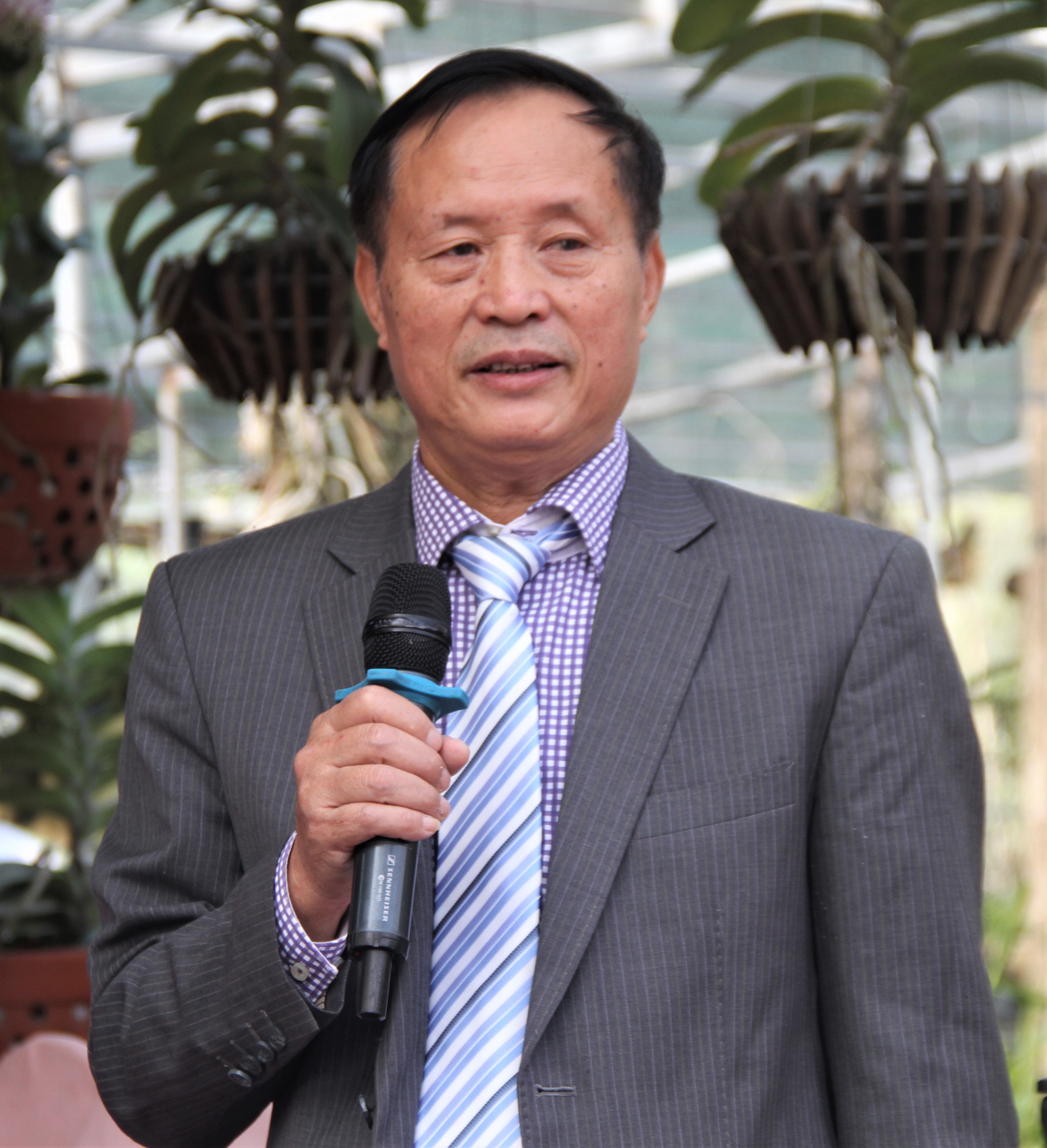 Nghệ nhân Nguyễn Huy Tấn, Phó chủ tịch Hội Hoa lan Hà Nội kiêm Giám đốc điều hành Trung tâm Nghiên cứu Bảo tồn và Phát triển Hoa lan Việt Nam phát biểu tại Hội nghị