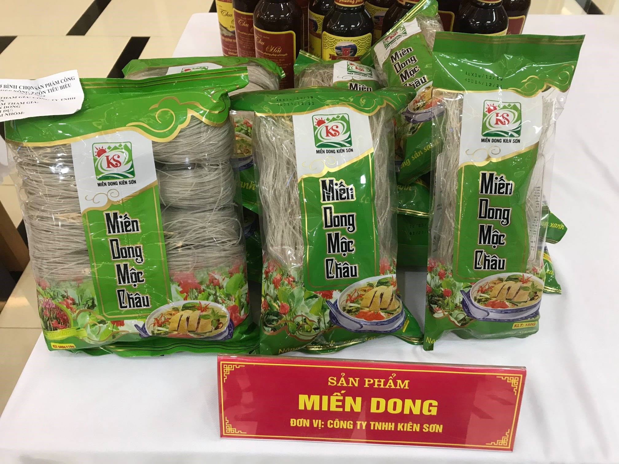 Miến dong Mộc Châu là sản phẩm của Công ty TNHH Kiên Sơn, là một trong những sản phẩm công nghiệp nông thôn tiêu biểu của tỉnh, được công nhận vào năm 2019. Tuy mới gia nhập thị trường nhưng miến dong Mộc Châu đã và đang tạo dựng, khẳng định thương hiệu riêng từ chính chất lượng của sản phẩm. Kế thừa kinh nghiệm từ truyền thống của gia đình, kết hợp với dây chuyền công nghệ sản xuất hiện đại, Công ty Kiên Sơn cho ra đời sản mới miến dong Mộc Châu chất lượng cao, giữ nguyên hương vị truyền thống. Sợi miến có độ trong, dẻo, màu sắc và hương vị tự nhiên, khi nấu không bị nát mà có dộ dai vừa phải.
