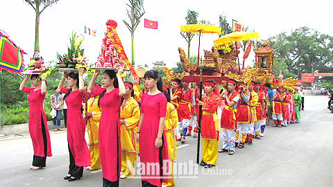 Để phát huy giá trị của các di tích trên địa bàn, cùng với làm tốt công tác bảo tồn, tôn tạo di tích, những năm qua, công tác quản lý, tổ chức lễ hội truyền thống gắn với các di tích đã được huyện chỉ đạo các địa phương thực hiện có hiệu quả theo hướng “văn minh - an toàn - tiết kiệm”; bài trừ các biểu hiện lạm dụng phần lễ mê tín dị đoan; khôi phục các hoạt động văn hóa, văn nghệ, thể thao, các trò chơi dân gian, dân vũ, gắn lễ hội với giáo dục truyền thống lịch sử, văn hóa. Tiêu biểu như lễ hội được tổ chức 3 năm một lần vào ngày kỵ của Công chúa Phụng Dương (con gái của Thái sư Trần Thủ Độ) 22-3 âm lịch ở Di tích lịch sử - văn hóa quốc gia Đình - Miếu Cao Đài, xã Mỹ Thành. Ở xã Mỹ Tân, lễ hội Đền Cây Quế diễn ra vào ngày 22-8 âm lịch hàng năm, đặc biệt có nghi thức “rước nước” độc đáo đặc trưng của tín ngưỡng thờ thủy thần tại ngã ba sông Hồng và sông Đào thể hiện ước vọng của người dân cầu cho “mưa thuận, gió hòa”, tri ân công đức của Linh Lang Đại vương.